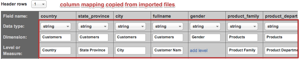 At first, please, read about flex.bi cubes, dimensions and measures - you will need to understand multi-dimensional data model to be able to map source file columns to cube dimensions and measures.