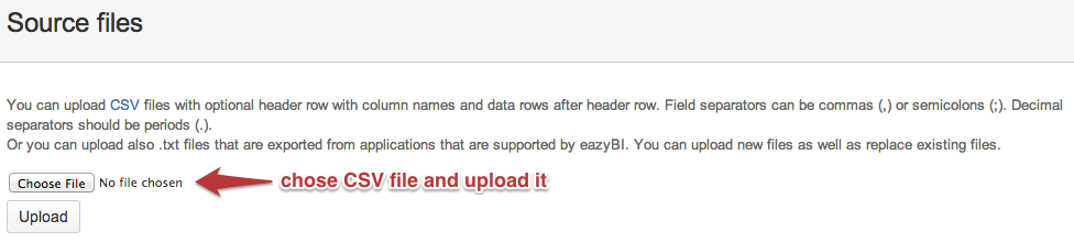 If you upload CSV files then use either comma (,) or semicolon (;) field separators. Decimal values should always use periods (.) as decimal separators. Commas (,) in integer and decimal values will be ignored (e.g. if they are used as thousands separators).